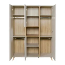 Cette armoire Quax possède trois étagères, une tringle (L45 cm), un tiroir (H14 cm) ainsi que trois portes. Grâce à ses nombreux rangement, cette armoire de chambre facilitera le rangement des affaires de votre enfant. Pratique, vous pourrez poser les choses les plus précieuses ou des petits objets déco dans la niche de l’armoire.
