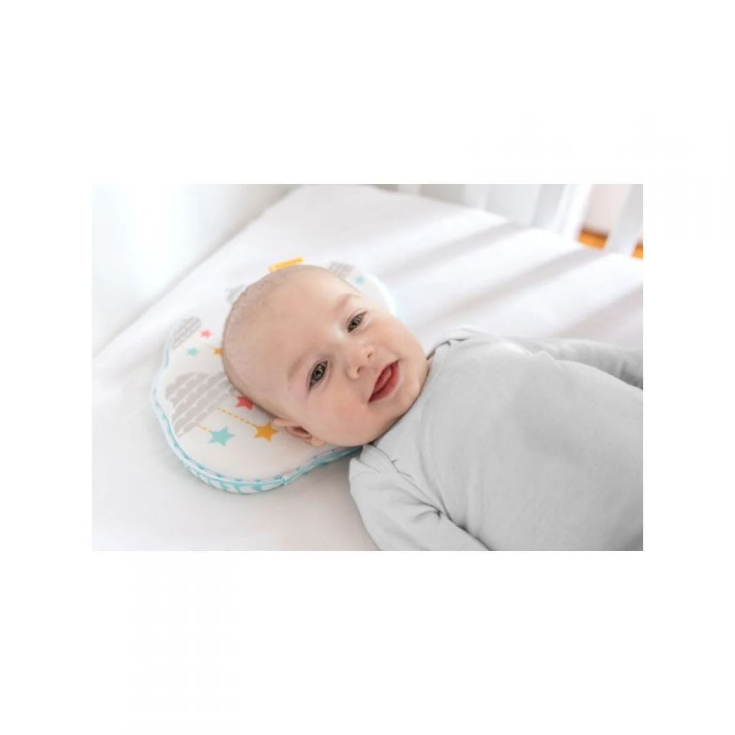 Découvrez le cale tête en forme de nuage de la marque Badabulle. Il protège l’arrière du crâne de l’enfant et le protège contre les risques de tête plate dès ses premiers mois de vie.