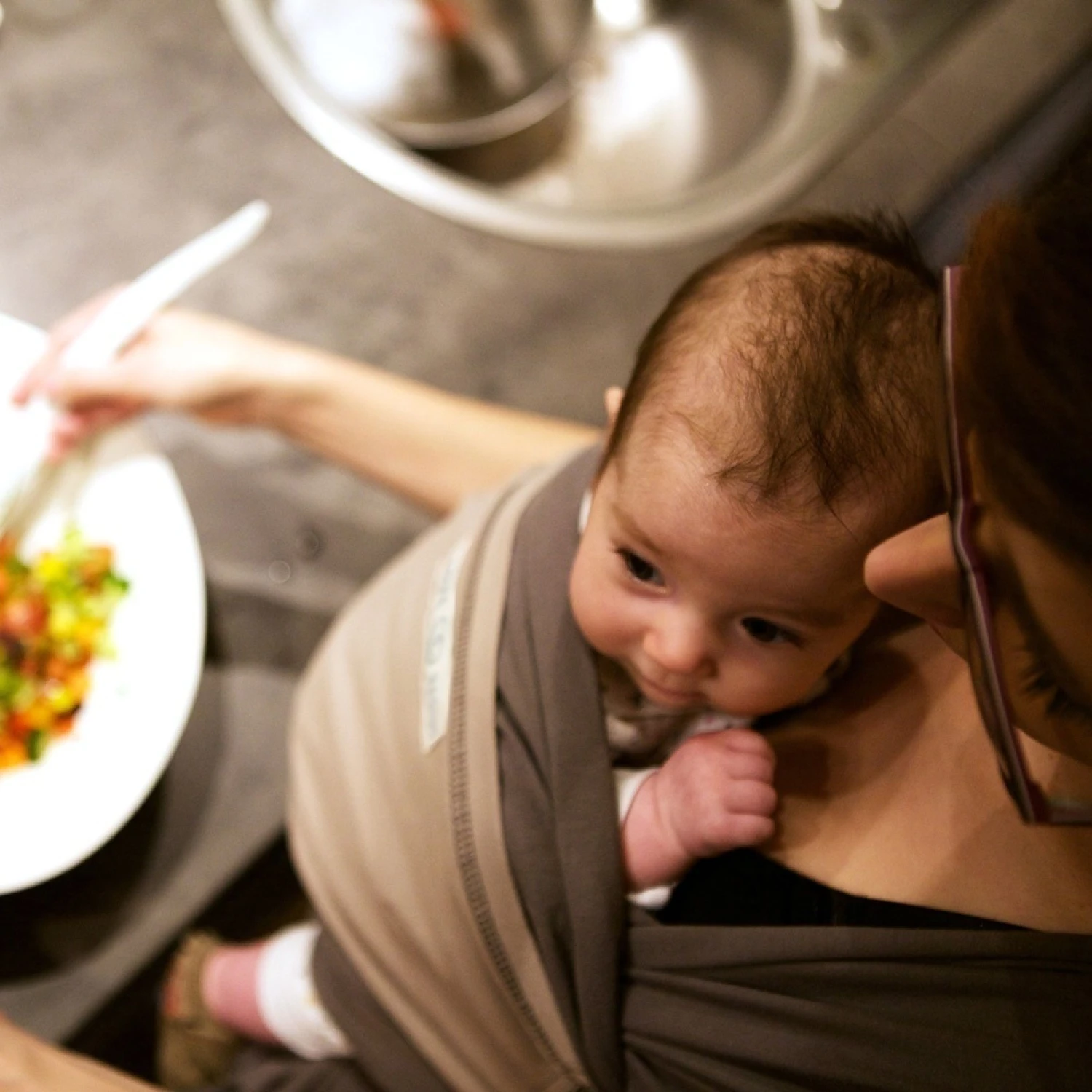 À l’intérieur de cette écharpe de portage, votre enfant sera installé dans une position physiologique avec les genoux plus hauts que son bassin. Pratique, vous pourrez mettre et sortir votre enfant de l’écharpe de portage Love Radius sans enlever le « nœud de base » !