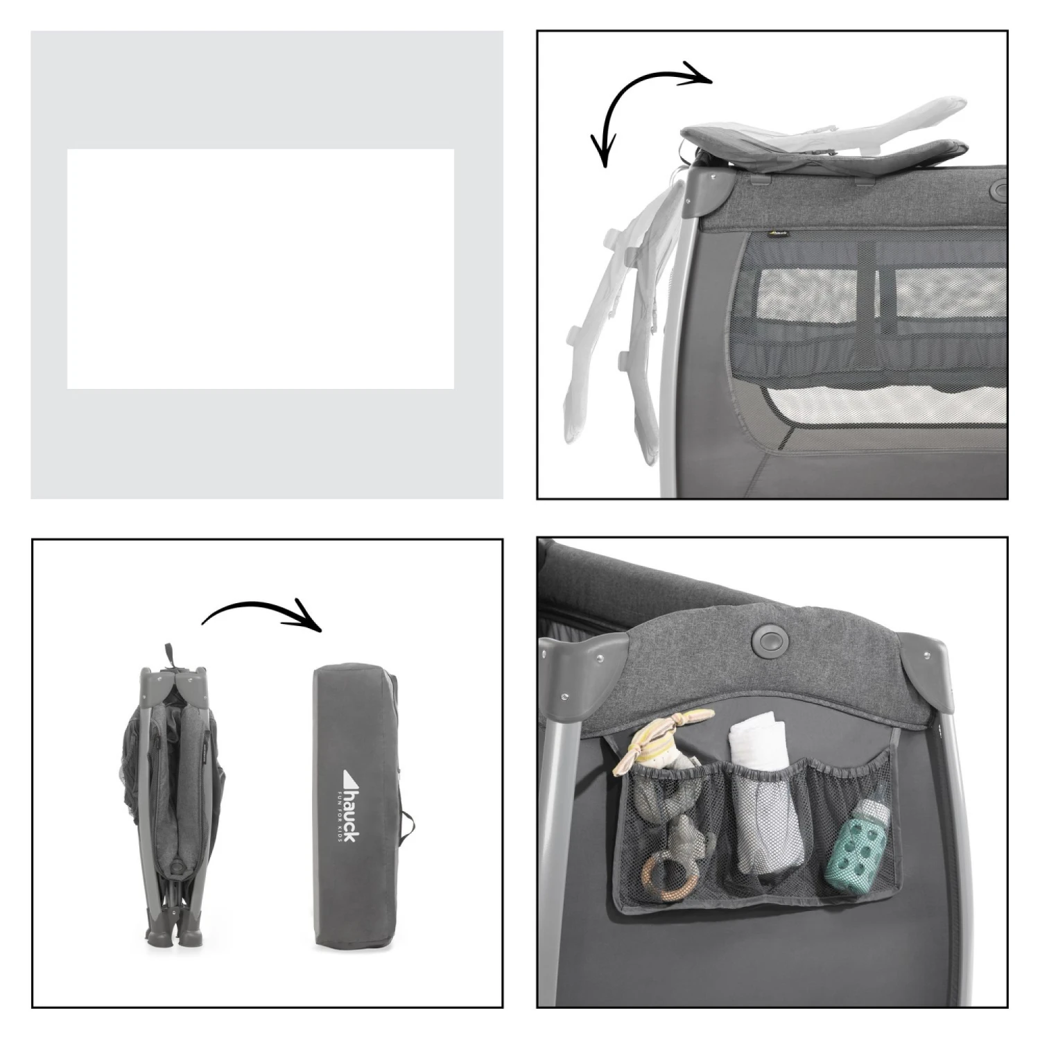 Quelles sont les caractéristiques du lit parapluie 3 en 1 Sleep N Play Center Mélange charbon HAUCK ?