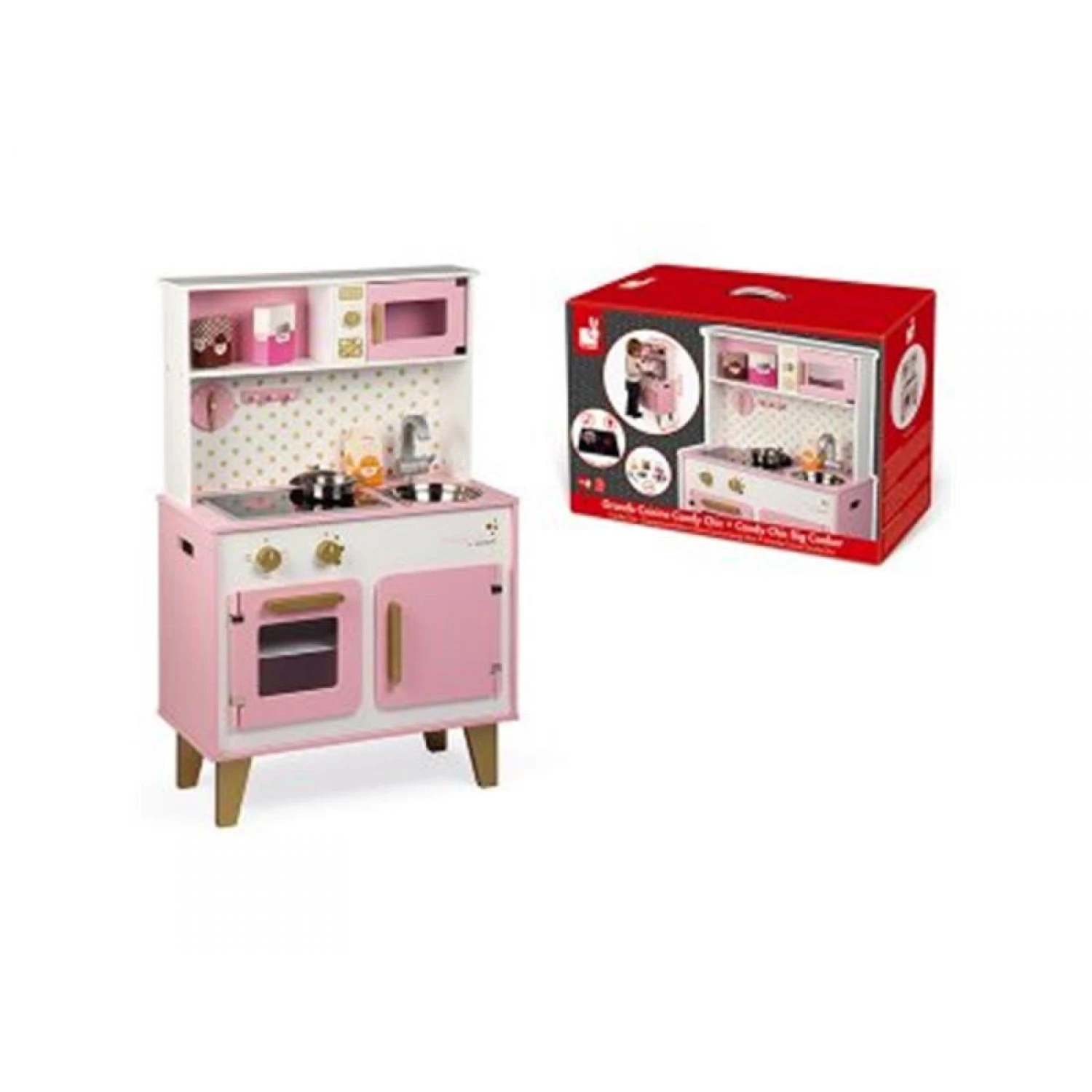 Craquez pour cette grande cuisine enfant de la collection Candy chic de la marque Janod. Le cadeau idéal pour les petits cuisiniers en herbe ! Avec sa propre cuisine en bois, votre enfant pourra cuisiner et imiter les grands chefs ou ses parents. Cette cuisine enfant est un jeu ludique et très réaliste avec ses plaques de cuisson qui s’allument et font du bruit. Avec cette cuisine en bois, votre enfant va pouvoir s’amuser à créer de bons petits plats pour ses parents, amis et même peluches !