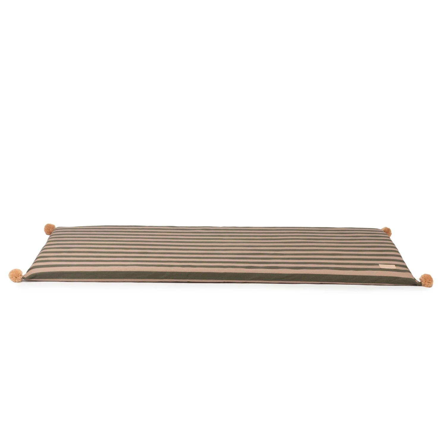 Découvrez le matelas de sol Green taupe stripes de la collection Majestic de la marque Nobodinoz. Avec ses rayures feutrées et ses 4 pompons, il offrira un design singulier pour raviver la chambre de votre enfant ! Pour se reposer ou bien pour jouer, le matelas Majestic sera le cadeau idéal pour un enfant qui aime passer son temps au sol.