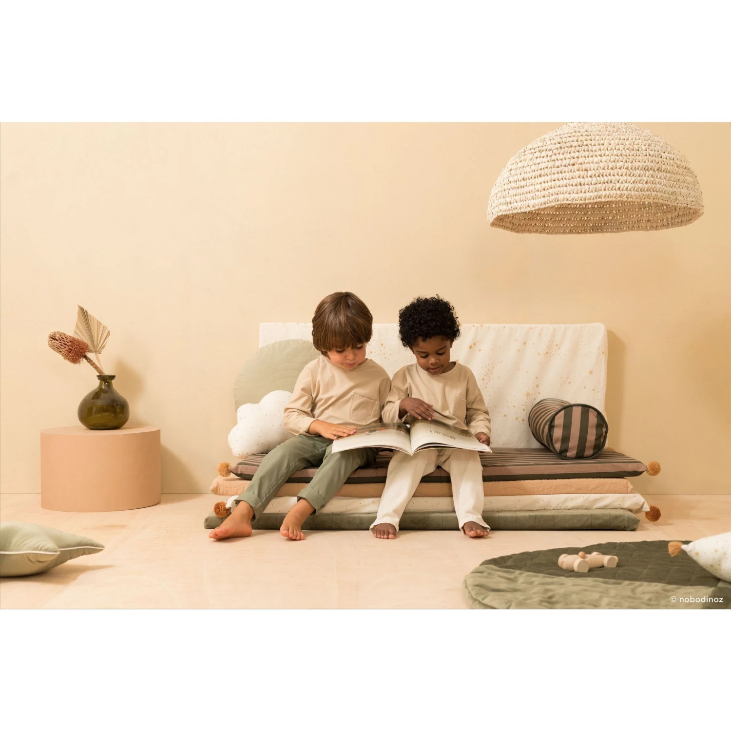 Découvrez le matelas de sol bio Taupe stripes natural de la collection Majestic de la marque Nobodinoz. Avec ses rayures feutrées et ses 4 pompons, il offrira un design singulier pour raviver la chambre de votre enfant ! Pour se reposer ou bien pour jouer, le matelas Majestic sera le cadeau idéal pour un enfant qui aime passer son temps au sol.