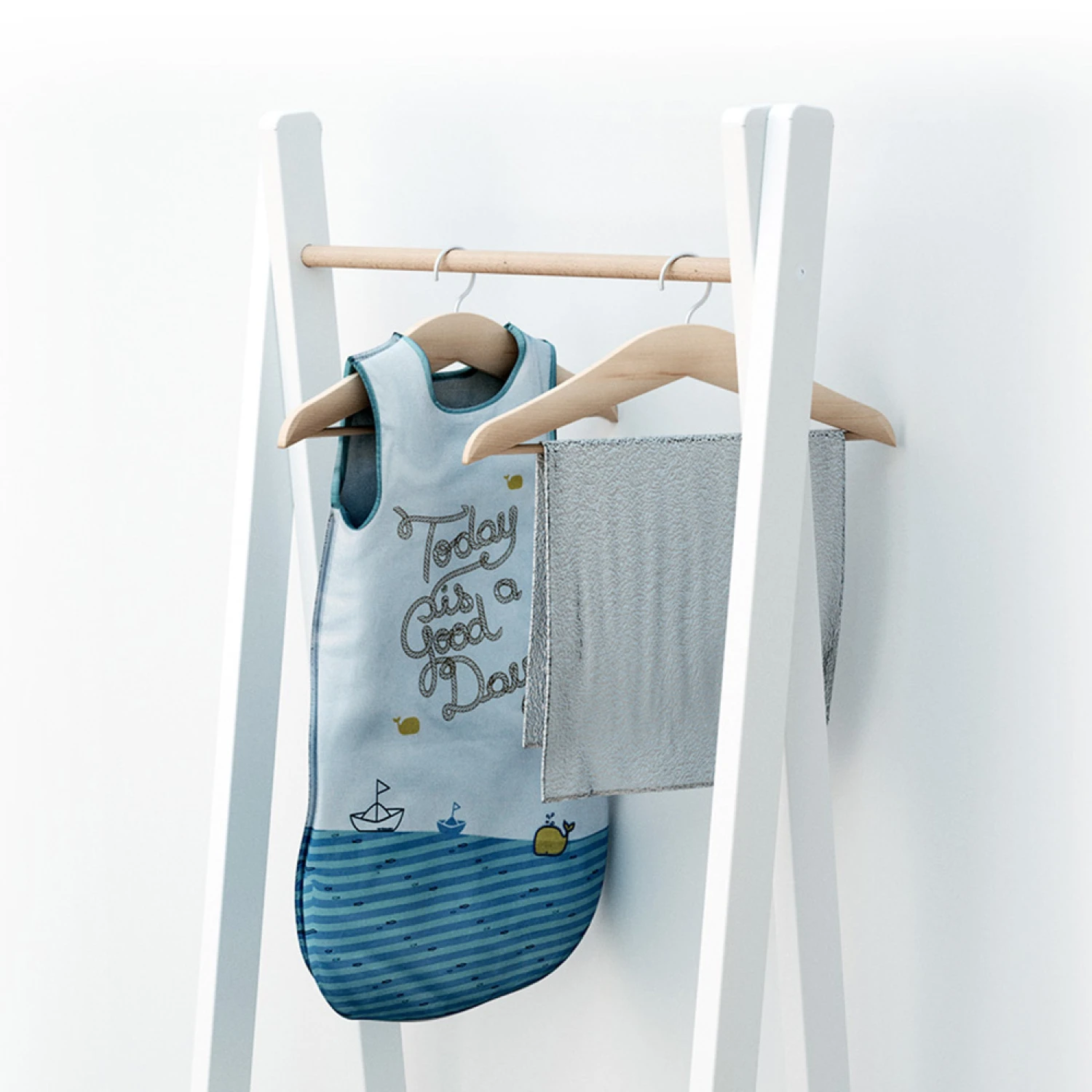 Ce portant habillera à merveille la chambre de votre enfant. Il possède une étagère ajourée en partie basse, idéal pour ranger les affaires de votre tout-petit. Le portant est pile à la bonne hauteur de votre enfant pour lui permettre de saisir ou de poser ses affaires facilement.