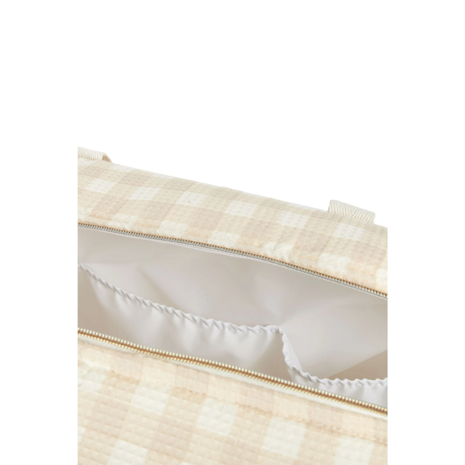 Optez pour le sac à langer Opéra nid d’abeille Ivory Checks de la marque Nobodinoz. Avec son coton bio imperméable, ses 3 poches de rangement et sa grande taille, il sera idéal pour préparer les affaires de votre bébé pour le jour J. Il deviendra ensuite un sac à langer ou un sac week end au top du style !
