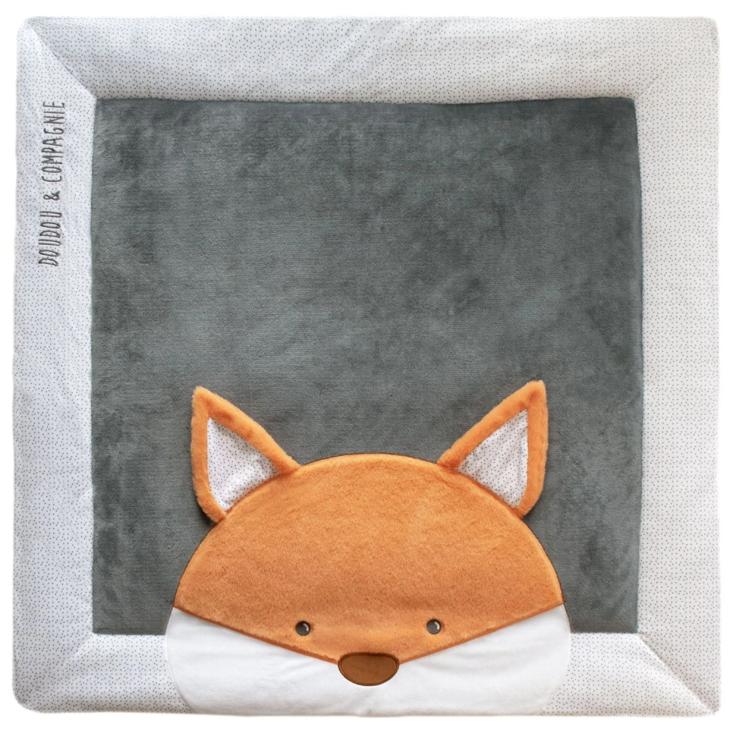 Découvrez le tapis de chambre tout doux avec un Renard de la collection Tapidou de Doudou et Compagnie. Une tête de chien est dessinée sur le tapis et ses petites oreilles sont en relief. Très rigolo et très tendance !